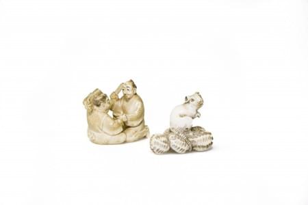 L'un figurant deux personnages conversant et un rat, ivoire scul...