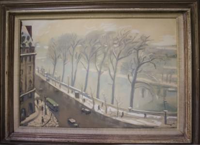 Paris sous la neige, huile sur toile signée, 65x81 cm