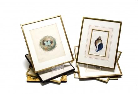 3542. Suite de huit lithographies figurant des oeufs et un coquillage
