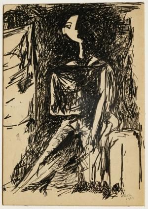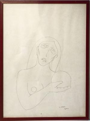 Personnage cubiste, encre, signée et datée 54, 15,5x10,5 cm