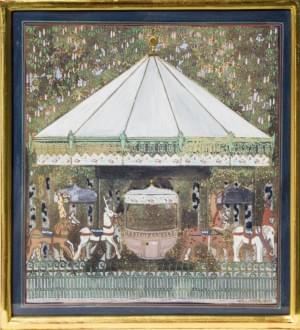Carrousel, gouache sur papier, signée, 21,5x21,5 cm