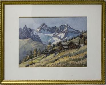 Vue du Zermatt, aquarelle sur papier, signée et datée 1968, 19x2...