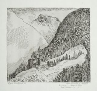 Vallée heureuse à Gstaad, gravure contresignée à la mine de plom...