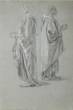 Etude de deux personnages en manteau, mine de plomb et rehauts b...