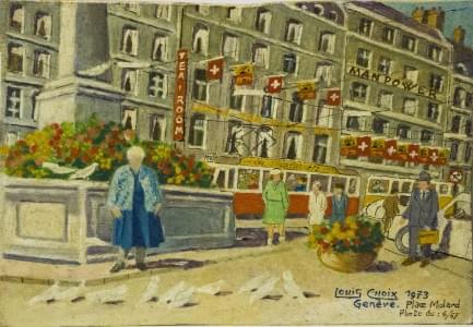 Place du Molard, Genève, huile sur bois, signée et datée 1973, 2...