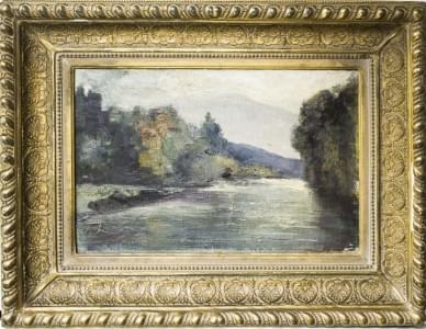 Fleuve, huile sur toile, attribuée au verso, 32x50 cm