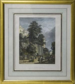 Trois gravures aquarellées, 26x40 cm