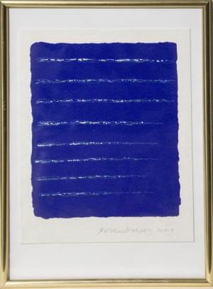 3573. Lignes blanches sur fond bleu, composition abstraite