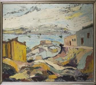 Huile sur pavatex signée et datée 63, 69x91 cm. Provenance: Arti...