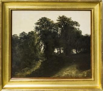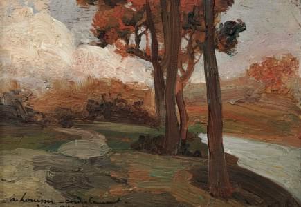 Paysage aux arbres, huile sur carton, signée, 28x34 cm