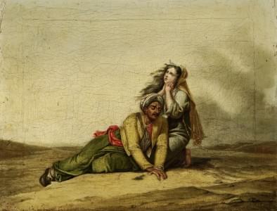 Homme et femme orientaliste, huile sur toile, 21x27 cm