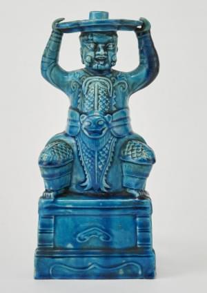 Porcelaine émaillée polychrome sur fond turquoise, H 34 cm