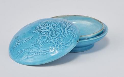 Porcelaine émaillée monochrome, fleur de pêcher, D 16,5 cm