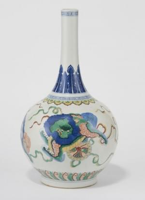 304. Vase à long col wucai, Chine, XXe s, marque Wanli apocryphe