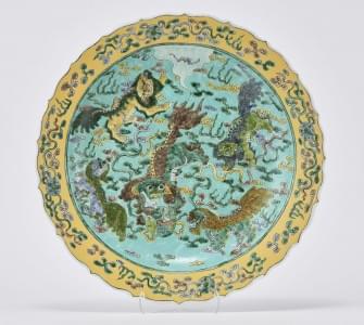 Porcelaine émaillée polychrome à décor d'un phénix et d'un drago...