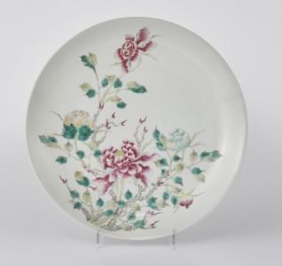 Porcelaine émaillée polychrome à décor de fleurs, D 27 cm