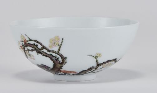 Porcelaine émaillée polychrome à décor de branche de cerisier, D...