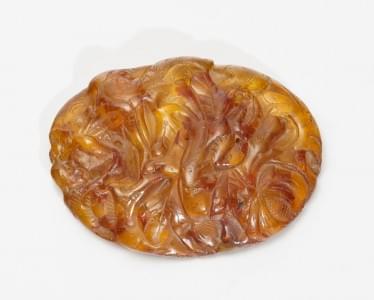 A décor sculpté d'une scène animée dans un paysage, 31x31 cm