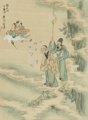 381. L'immortel Lu Dongbin à cheval et acolytes, Chine, dynastie Qing...
