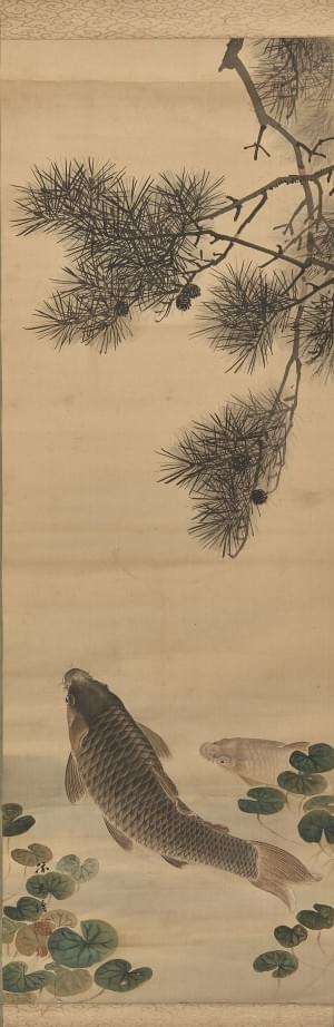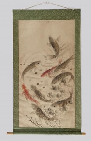 Carpe, aquarelle et encre sur soie, montée en rouleau, 120x41 cm