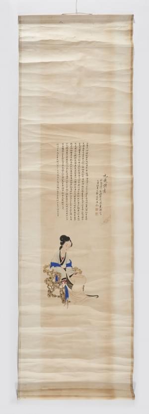 Portrait de femme et poésie, encre sur papier, montée en rouleau...