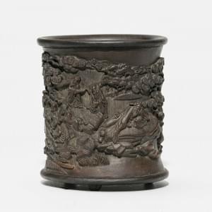 378. Bitong à décor de scènes animées en relief, Chine, XIXe s