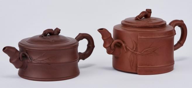 Terre cuite à décor de bambous, H 17 et 19 cm