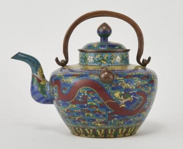 Cloisonné à décor d'un dragon et d'un phénix, H 21 cm