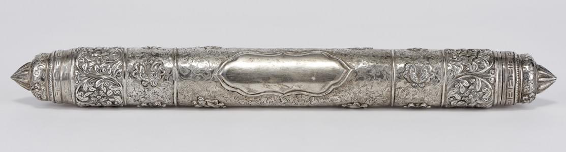Argent travaillé au repoussé à décor de rinceaux, L 40 cm