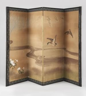 A décor d'un vol de canards sur fond or, 171x260 cm