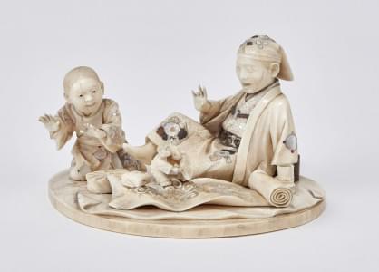 430. Okimono figurant un vieil homme jouant avec un enfant, Japon, fi...