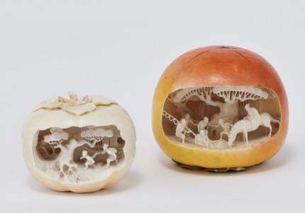 431. Deux okimonos en forme de fruits, Japon, début XXe s