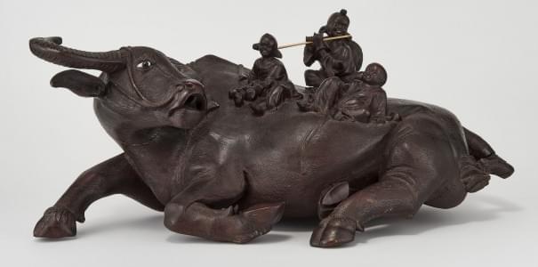 434. Buffle couché et personnages, Japon, début XXe s