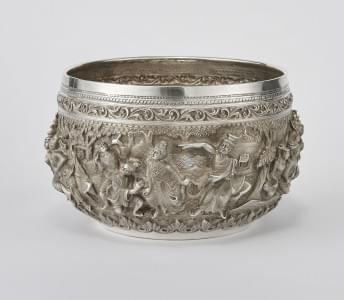 Argent repoussé à décor de scènes mythologiques, D 18 cm, 870g