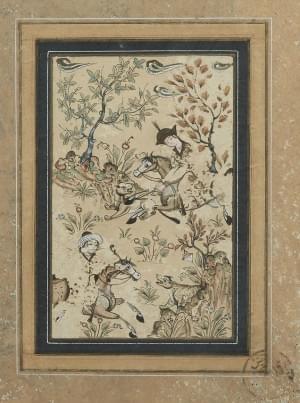 Scènes de chasse, encre et gouache sur papier, 15x11 cm