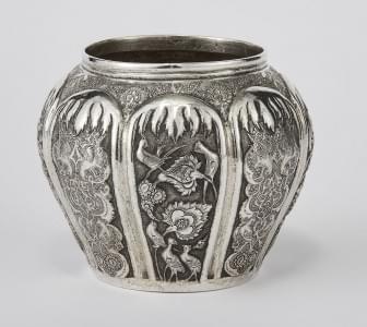 Argent ciselé à décor de fleurs et oiseaux, H 11 cm, 320 g