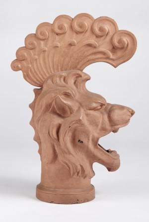 111. Epi de faîtage figurant une tête de fauve surmontée d'une crête
