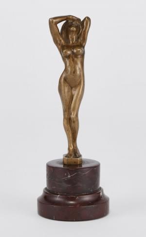 Nu féminin debout, bronze à patine médaille, signé, H 11 cm