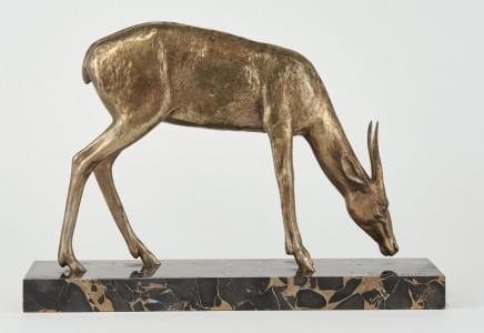 Antilope, bronze à patine argentée, base en marbre, signée G Rig...