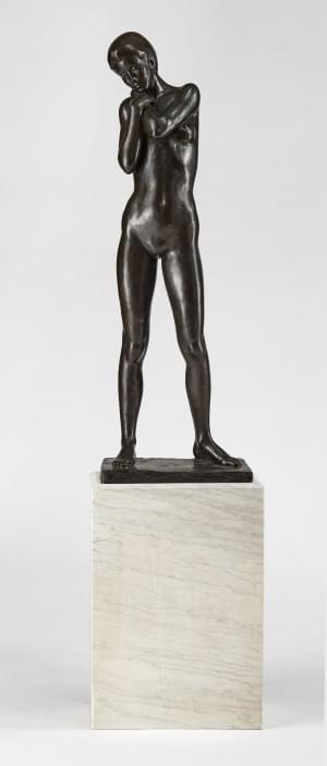 Jeune fille debout, bronze à la cire perdue à patine brune, mono...