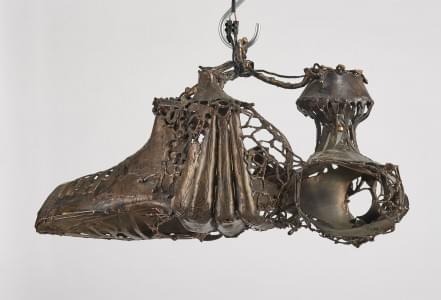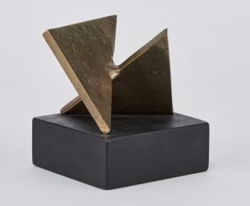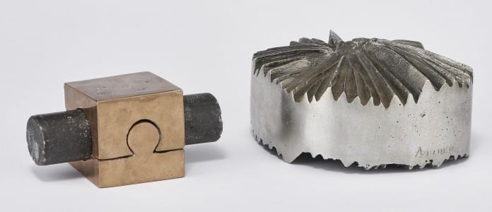 Deux sculptures abstraites, bronze, aluminium et pierre volcaniq...