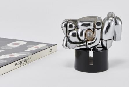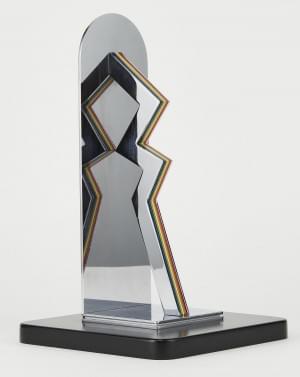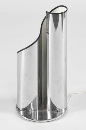 Composé d'une feuille de métal chromé en S sur base circulaire,...