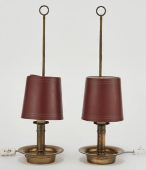 Paire de lampes bouillotte, laiton et tôle peinte rouge, H 47 cm