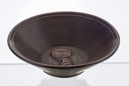 Grande coupelle à décor appliqué d'un joueur de flûte de pan, gr...