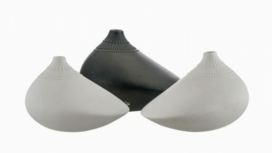 Trois vases soliflores aviformes, biscuit, marqués et signés, H...