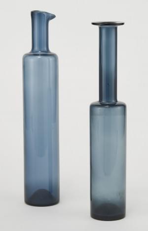 Deux bouteilles, verre coloré bleu, éditeur Riihimäen Lasi Oy, H...