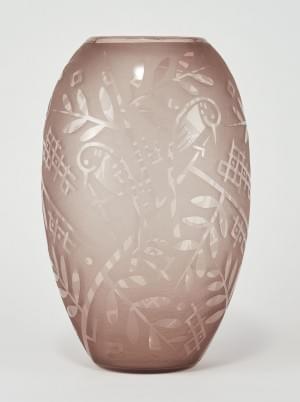 Verre saumon à décor gravé à l'acide de motifs végétaux, H 36 cm