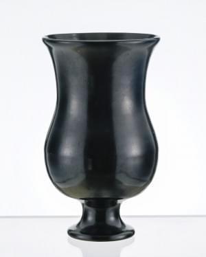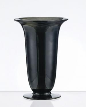 Vase tronconique sur piédouche, verre vert à patine lustrée noir...