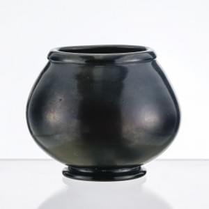 Vase boule, verre orangé à patine lustrée noire, trace de signat...