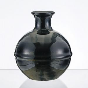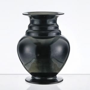 Vase balustre à col annelé, verre vert à patine lustrée noire, H...